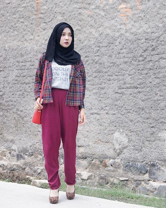 Untuk bawahannya kamu bisa menggunakan office pants yang memilii warna hitam. Dipadukan dengan hijab motif square dan flat shoes akan membuat kamu tampak begitu modis namun nyaman seharian beraktivitas. Bagaimana dengan perhiasan emas putihnya? Kami lebih menyarankan untuk menggunakan cincin saja agar terkesan lebih sederhana. Bukankah untuk terlihat mempesona itu tidak harus seklalu menggunakan banyak perhiasan? Terlebih ini untuk pergi kekantor, dengan tamilan yang minimalis seperti ini kamu pasti akan lebih bebas untuk beraktivitas.
